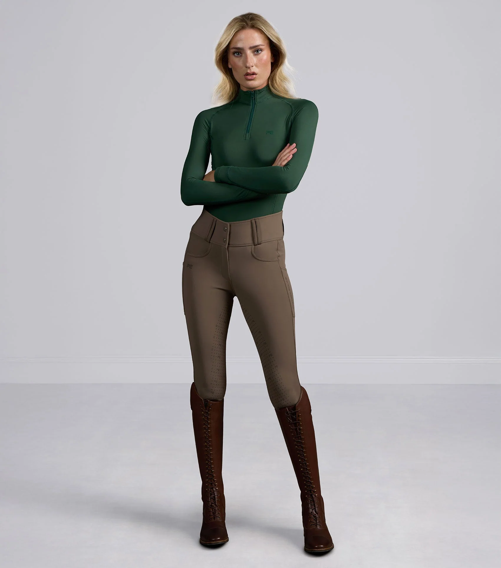 Bezpečné zapínanie na zips a vystužené pútka na opasok zabezpečujú pohodlné a nastaviteľné nosenie v páse. Doplnené nenápadným logom „Premier Equine“, ktoré odráža kvalitné remeselné spracovanie a moderný športový štýl.