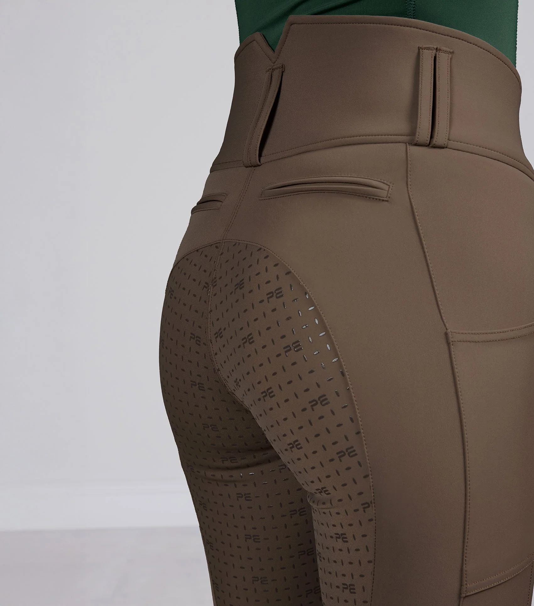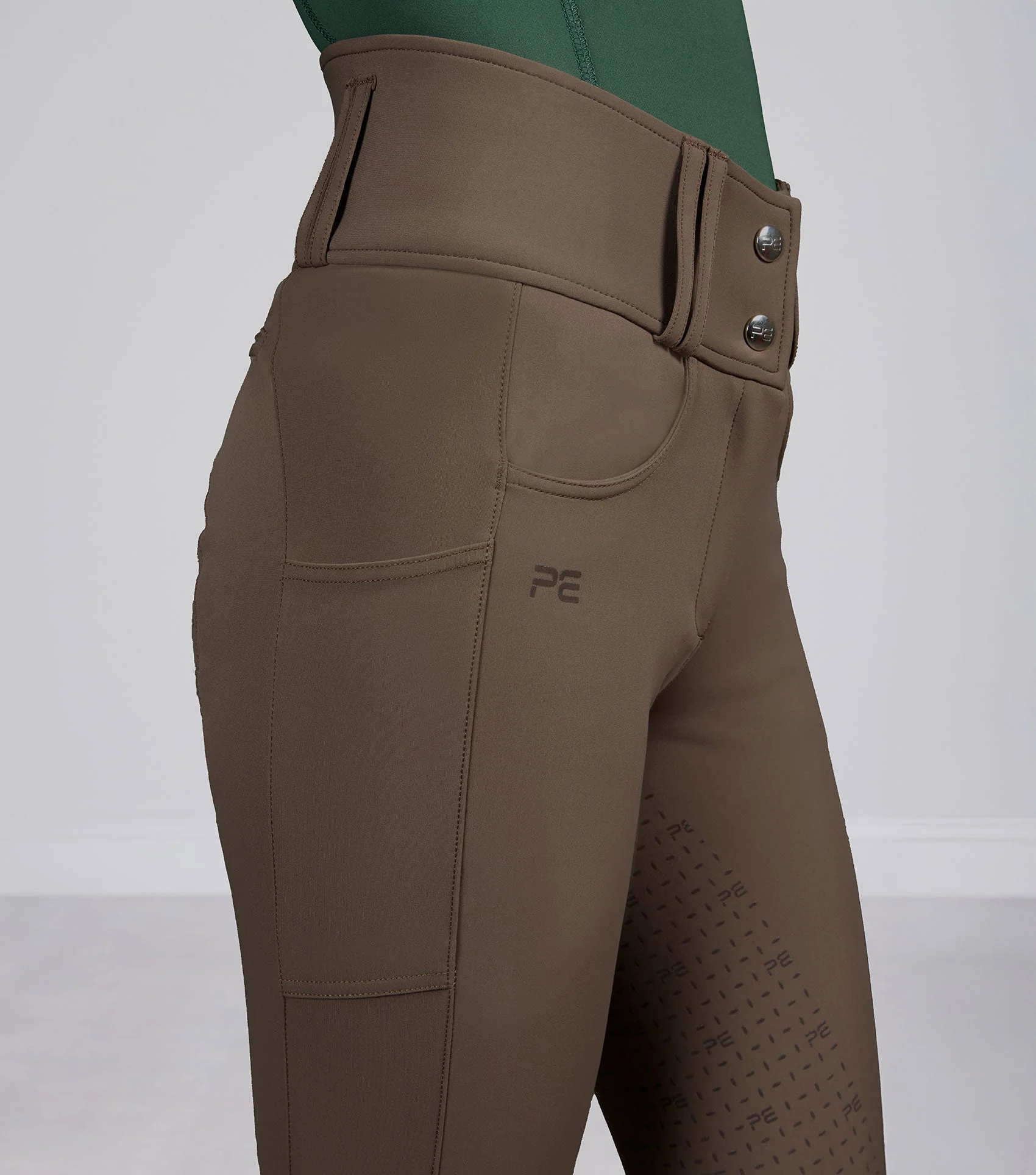 Sed s celoplošnou gélovou potlačou s logom PE zlepšuje priľnavosť a stabilitu v sedle, čím poskytuje väčšiu istotu pri jazde. Starostlivo umiestnené švy vytvárajú lichotivý strih a zároveň zaručujú voľný strih, ktorý sedí ako druhá koža. Dve tradičné predné vrecká zvyšujú praktickosť pri každodennom nosení, zatiaľ čo dve zadné vrecká dotvárajú klasický dizajn jazdeckých nohavíc. Pre väčšiu funkčnosť sú v strede stehien umiestnené dve diskrétne vrecká na telefón, ktoré umožňujú ľahký prístup bez obmedzenia pohybu alebo pohodlia.