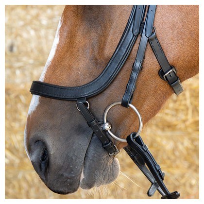 Podhrdelník poskytuje dodatočnú stabilitu a udržuje uzdu bezpečne na mieste. Vybavená skrytými zapínaniami na lícnych remienkoch .