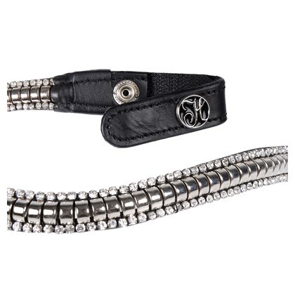 Kožená čelenka so striebornými sponami, po bokoch zdobený radom strieborných kryštálov. Ľahko sa pripína pomocou praktických patentiek.